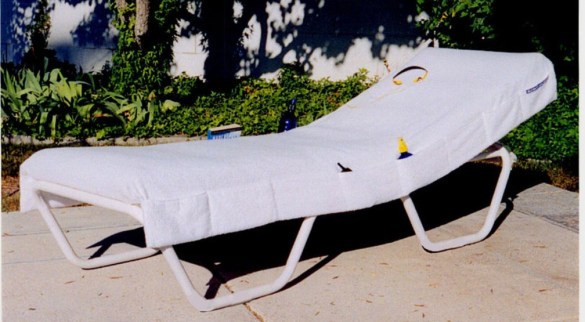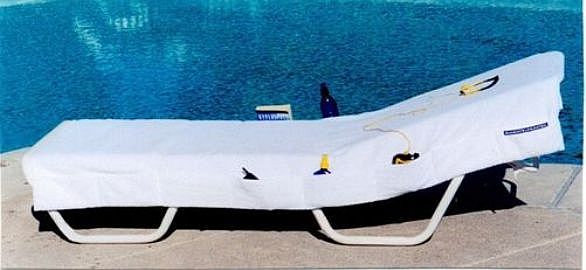 Slip the Extra Large Dual-Hooded Pocketed Lounge Towel over each end of your chaise lounge cushion, or just slip a single hood over the top of your chaise lounge.