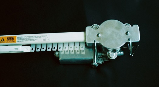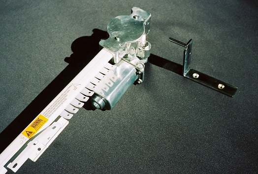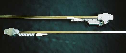 The original traverse-rod bracket, still used with the single-rod conversion, is now replaced with a take-up pulley contained in a housing with an aperture shaped to receive the traverse rod.